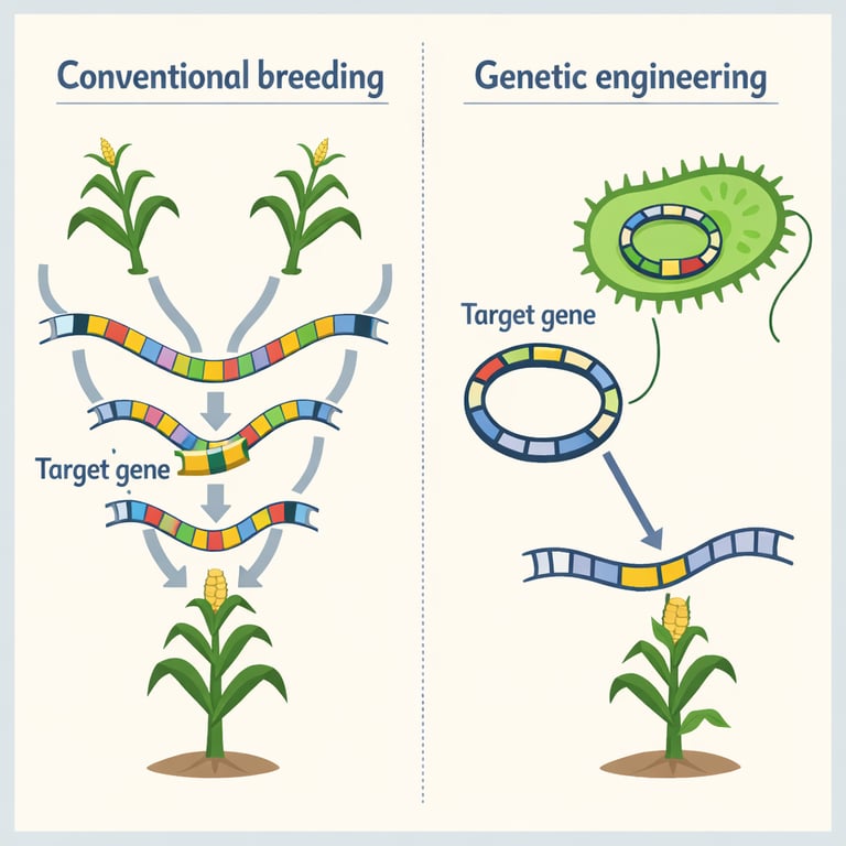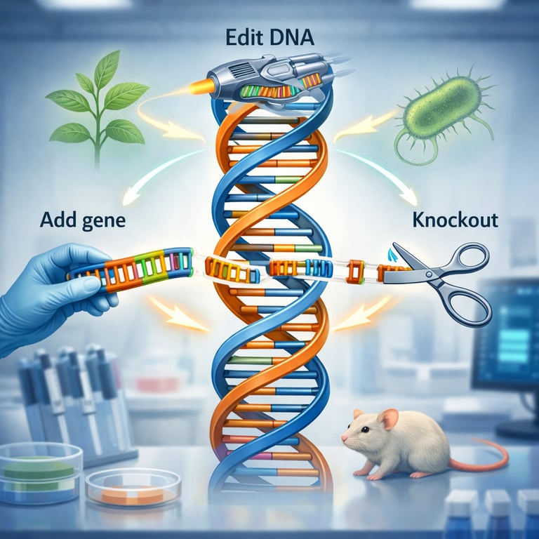 Genetic engineering (genetic modification/manipulation) is the technology-driven alteration of an organism’s genes by adding, removing (knockout), or editing DNA. It enables gene transfer within or across species boundaries and can insert DNA randomly or at targeted genome sites, yielding organisms with novel or improved traits.