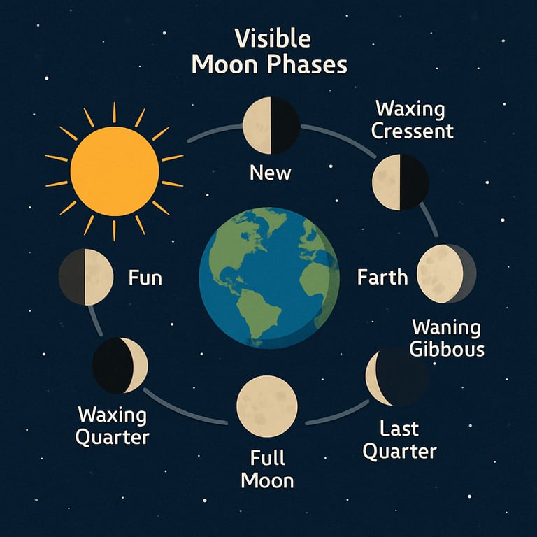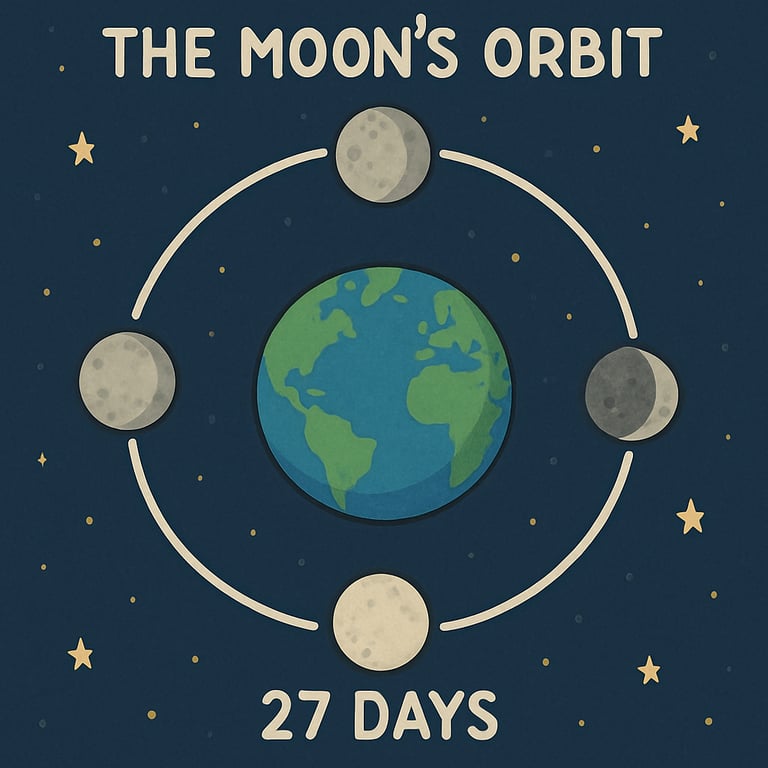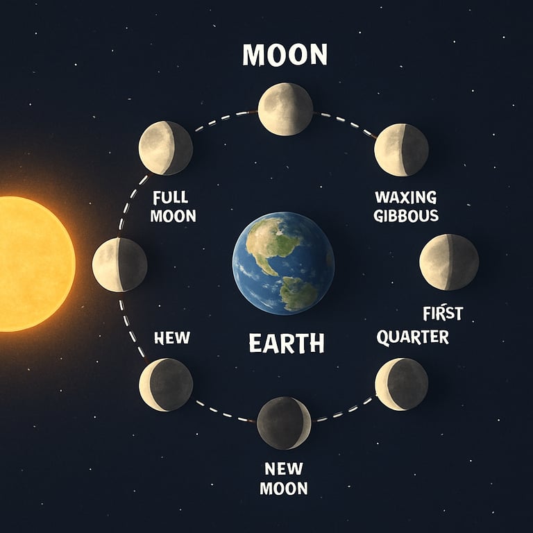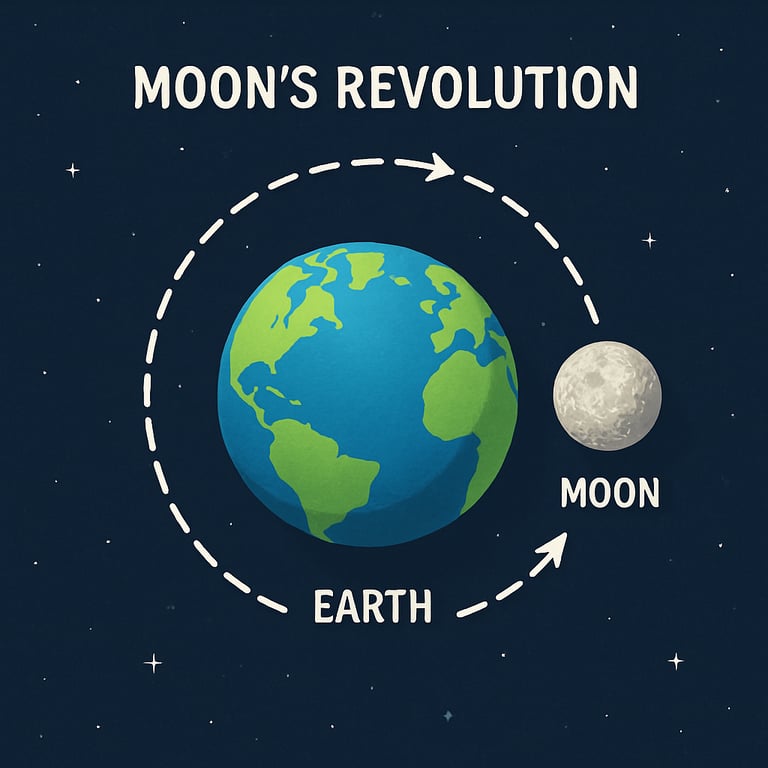 A presentation explaining the moon's revolution and phases with diagrams and illustrations.